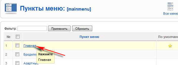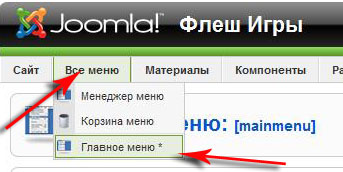 Далее идем Все меню выбираем Главное меню и нажимаем на пункт меню Главная