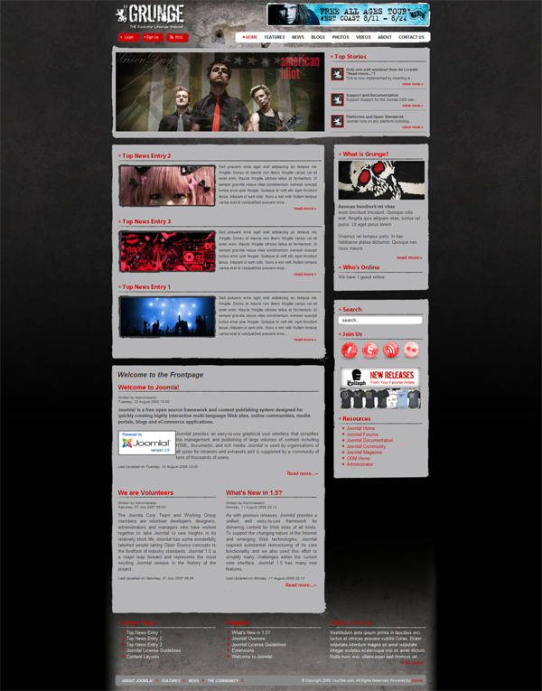 Представлен хотя и не совсем новый шаблон для Joomla! 1.5 от www.joomagic.com музыкальной тематики, но довольно симпатичный - Grunge !
