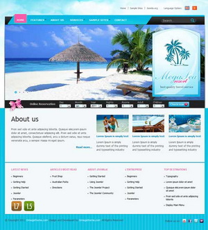 Шаблон Sea Resort обладает не навязчивым оформлением с нотками легкости. Цветовое оформление шаблона выполнено в светлых тонах.