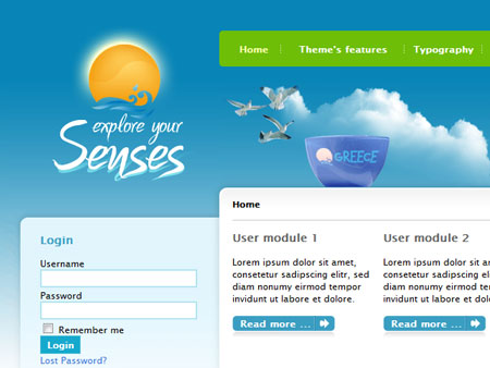 Представляем воздушный шаблон для Joomla 1.0 - BT Senses. Данный шаблон разрабатывался для туристичекой фирмы или сайтов южных курортных городов. Bonus Themes BT Senses можно использовать в оформлении сайтов туризма, путешествий, экскурсий.