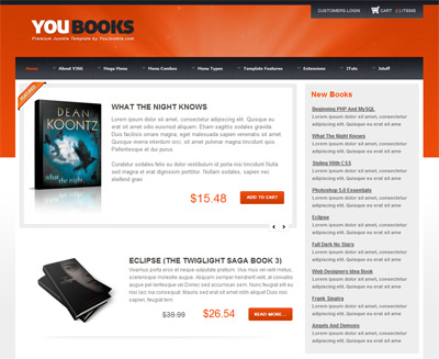 Представляем новый шаблон для Джумла - Youbooks, предназначенный для оформления или создания интернет-магазинов на Virtuemart по реализации книг.
