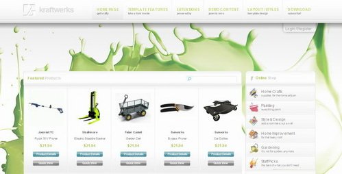 Представляем новый январский шаблон для Joomla 1.5 от www.joomlaxtc.com - Kraftwerks. Данный шаблон будет полезным в создании интернет-магазина на Joomla!, на базе компонента VirtueMart 1.1.4