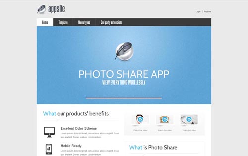 Представляем новый функциональный шаблон для Джумла - AppSite предназначенный для оформления сайтов бизнес-портфолио, корпоротивных сайтов или сайтов-визиток компаний, в том числе и организаций.