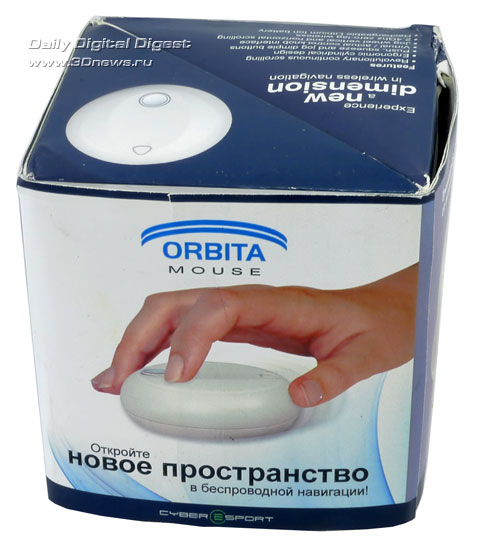Увидев первый раз на полке в магазине это оригинальное устройство, можно решить, что это новомодный USB-приборчик, возможно для подогрева чашки с кофе. Но внешний вид часто бывает обманчив, оказывается этот небольшой круг, обернутый в специальную силиконовую оболочку, относится к семейству компьютерных мышек, хоть с первого взгляда и не поймешь. Orbita Mouse аккуратно упакована в кубическую маленькую коробочку вместе с док-станцией, кратким руководством пользователя на русском языке, буклетом на английском языке, чехлом и диском с ПО.