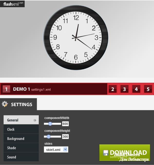 Модуль достаточно легко устанавливается и успешно позволяет производить экспрерименты со внешним видом часов, для чего используется xml-файл. Бесплатная версия расширения содержит водяной знак с логотипом разработчиков.