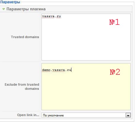 Плагин для Joomla запрещает поисковым роботам Яндекс и Гугл индексировать внешние ссылки с вашего сайта с определенных доменов(по вашему выбору).Допустим нам надо запретить индексацию домена demo.vasava.ru для этого нам надо добавить этот поддомен в настройке плагина в ячейку №2, а для того чтоб основной домен индексировался vasava.ru его добавляем в ячейку №1, В общем принцип работы я думаю вам понятен, данный плагин очень хорошо подойдет людям которые в большом количестве размещают ссылки на файл обменники.