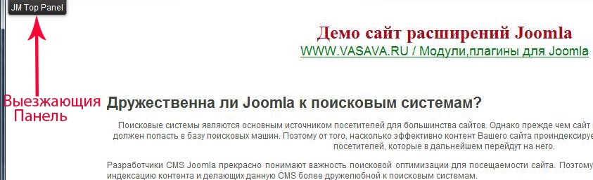 JM TopPanel прикольный и полезный модуль позволяющий установить на сайт выпадающию панель